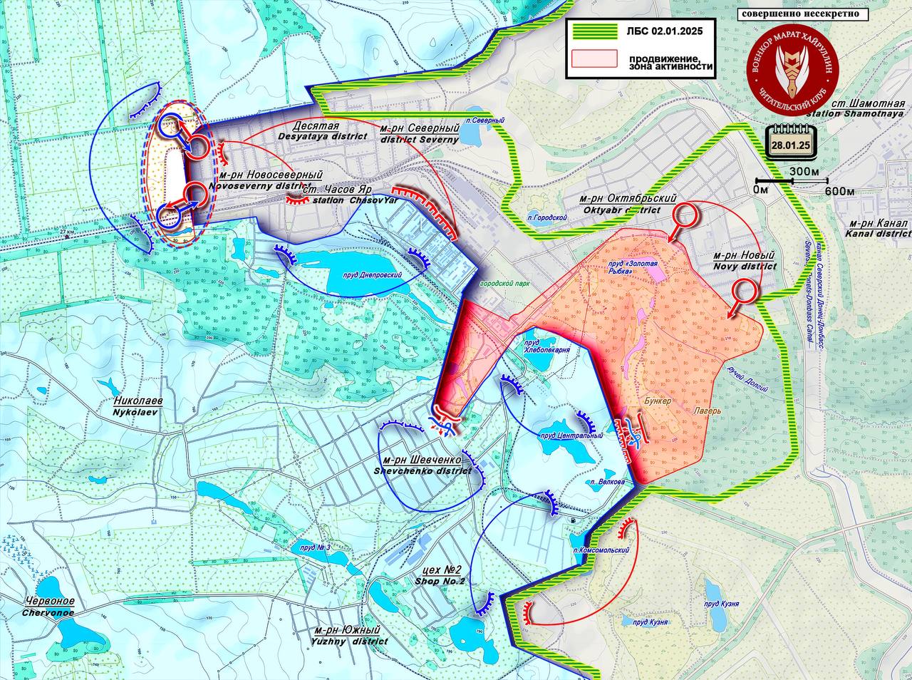 В последнее время существенно активизировались бои на юге Часовоярского участка, где ВС РФ взяли под контроль террикон карьера №9. Штурмовые группы работают в направлении цеха №2, пытаясь закрепиться в его районе.