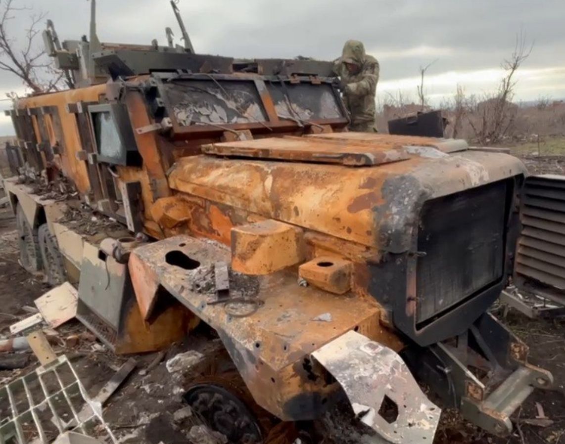Уничтоженные после прилётов FPV-дронов ВС РФ американская БМП M2 Брэдли и бронеавтомобиль «Козак-7» в Курской области.