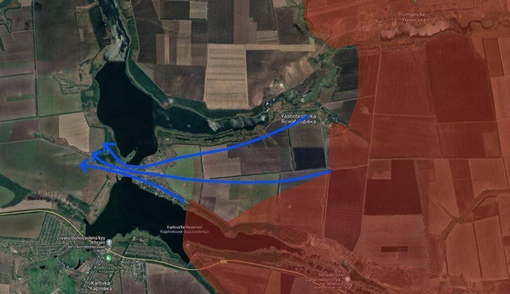 ДНР, Константиновка, что у Парасковиевки. Характерный участок местности с водоёмом указывает, что раз прилёты нашей ТОС «Солнцепёк» приходятся по восточной окраине населенного пункта, то работы на этом направлении ещё много. Тем не менее, бои за Константиновку имеют важное значение: дорога на Угледар и важный логистический узел передовых подразделений ВСУ.