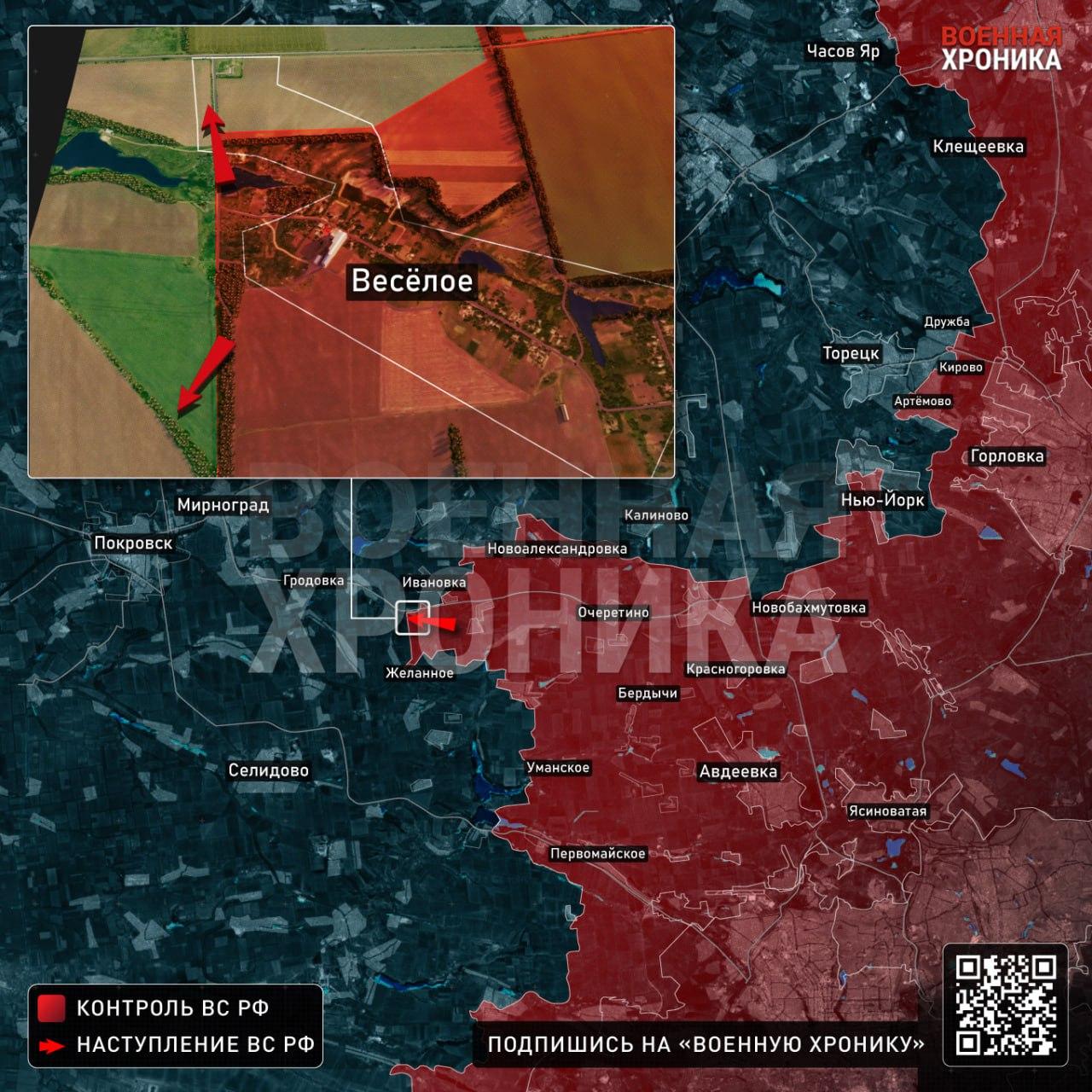 Главный оборонительный рубеж теперь проходит напрямую у Гродовки, а зона Весёлое — Желанное — Ивановка практически полностью под российской армией. Южный «лепесток» очеретинского «цветка» пытается сдержать 68-я пехотная бригада ВСУ, но, скорее всего, это подразделение в ближайшее время будет выведено в тыл из-за больших потерь.