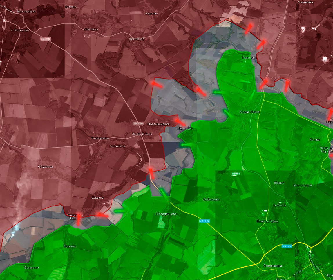 А потом и Богатыря. И т. д. до самого слияния рек Волчьей и Мокрые Ялы. И это естественно приводит к большим (и неоправданным) потерям ВСУ в разворачиваемся на берегах реки Волчья, сражении.