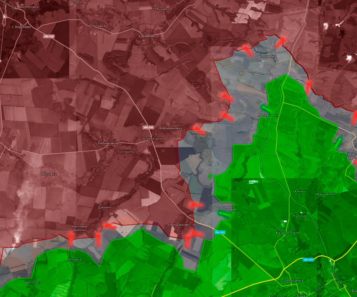 В северной части украинского плацдарма зона контроля ВСУ сократилась, оборона отступила по линии Погребки – Русское Поречное, что ограничивает маневренность украинских подразделений.