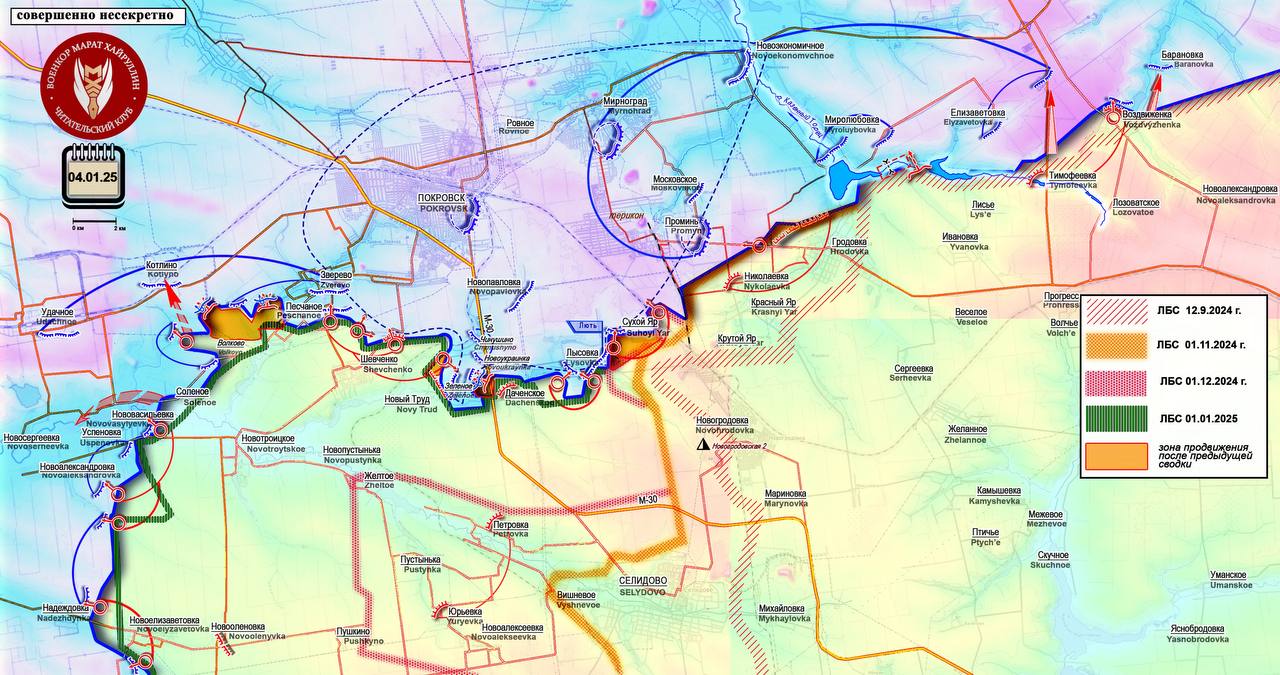 05.01.2025. Последние новости с Украины. Противник отступает, оттесняем врага на Покровском, Кураховском, Великоновоселковском направлении. Отбита контратака южнее Мирнограда. Карта боев. (20 видео)