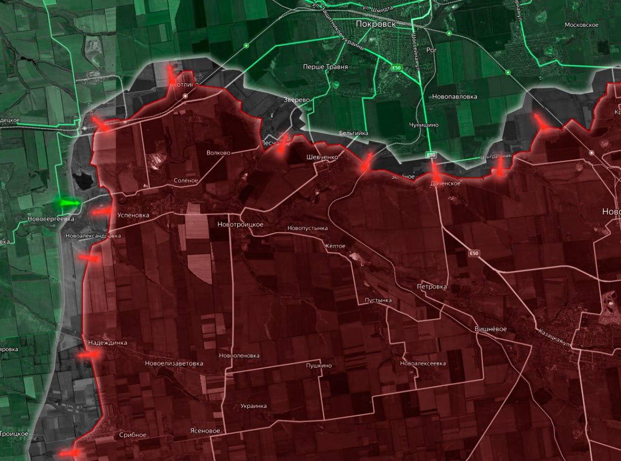 На Покровском направлении украинские войска по трассе с Покровска пытаются прорвать оборону ВС РФ в районе населённого пункта Шевченко и закрепиться в районе местного стадиона. Отметим, что ранее Вооруженные силы Украины контратаковали позиции российской армии в районах Котлино, Песчаного и Лысовки, но фактически безрезультатно.