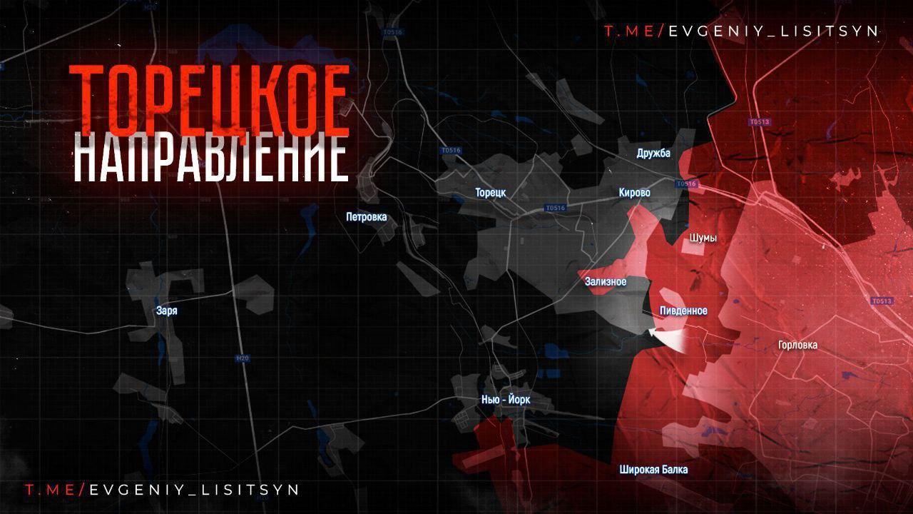 На Торецком направлении бои идут уже на юго-восточной окраине самого Торецка (Дзержинска). По пока неподтвержденным данным, российским силам удалось взять под контроль террикон местной шахты, что дает нашим бойцам наблюдать за передвижениями противника в Торецке. Также со стороны Железного началось движение ВС РФ к Нью Йорку (Новгородскому) с северной стороны. Основные бои в этом поселке сейчас идут в районе фенольного завода, который ВСУ превратили в мощный укрепрайон.