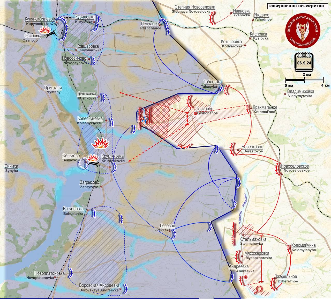 Российская армия расширила зону контроля от Песчаного в сторону сёл Колесниковка и Кругляковка, сообщают местные украинские каналы. В Купянском районе активно разрушаются логистические пути врага, включая мосты и переправы на р.Оскол
