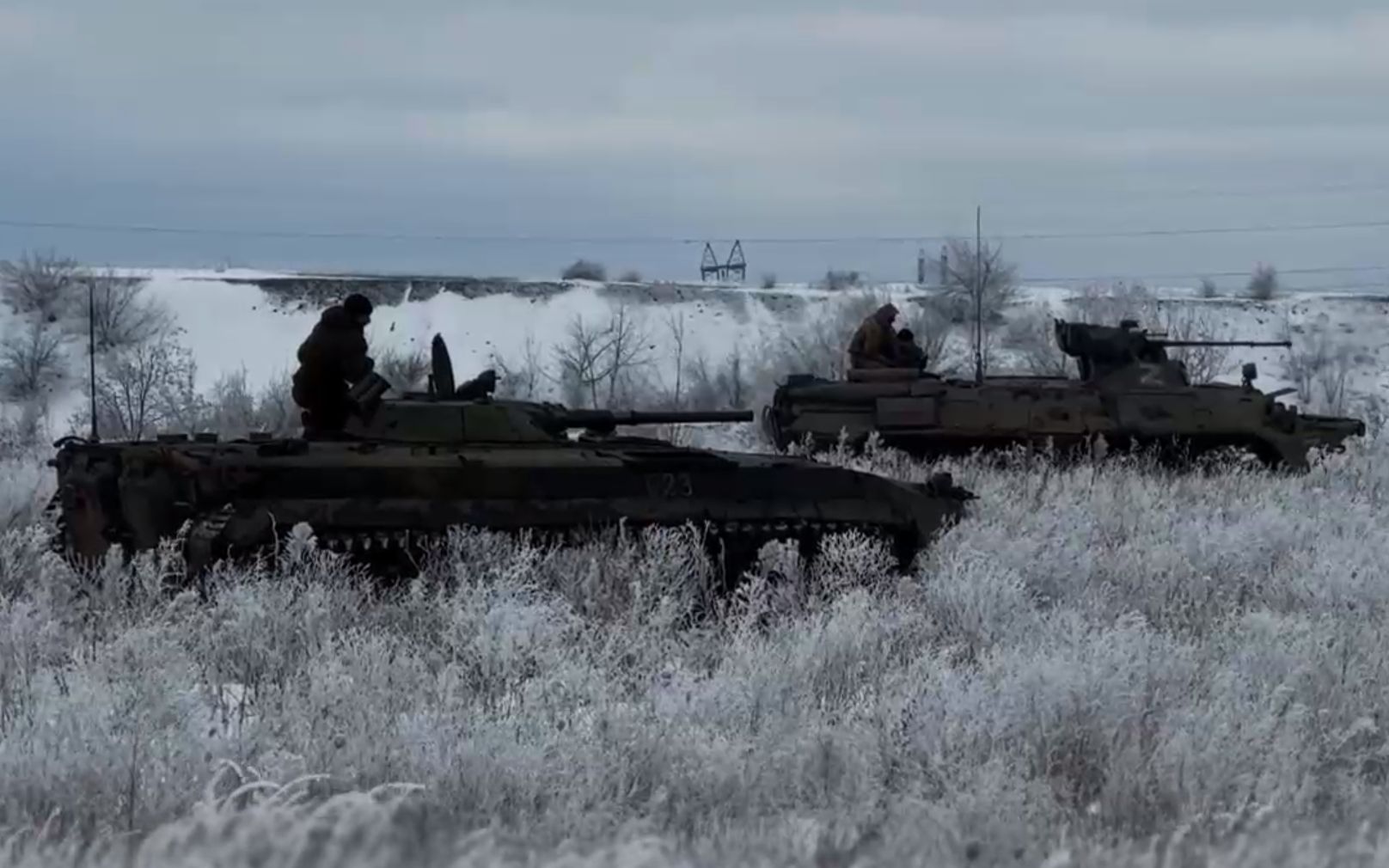 Приграничная зона. Группа боевиков ВСУ хотела пересечь границу, но видимо сильно замерзли и остались лежать в посадке. Дрон бойцов группировки «Север» фиксирует результаты очередной провальной попытки войск киевского режима организовать провокацию на границе.