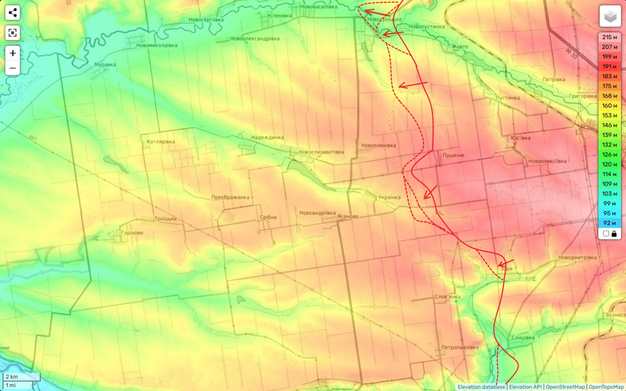 Во-первых, в районе Дарьино-Новый Клин нам удалось закрепиться на новых позициях по направлению к Свердликово. Здесь главной проблемой являются открытые обширные поля до самого этого села, превращенного противником в мощнейший укрпрайон. На самом деле выбить его отсюда задача архисложная.