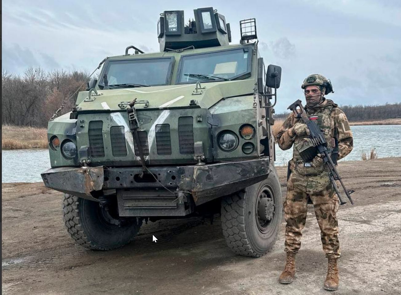 Брошенный и уничтоженный бронеавтомобиль Козак-7 украинских оккупантов возле н.п. Ольговка Курской области.