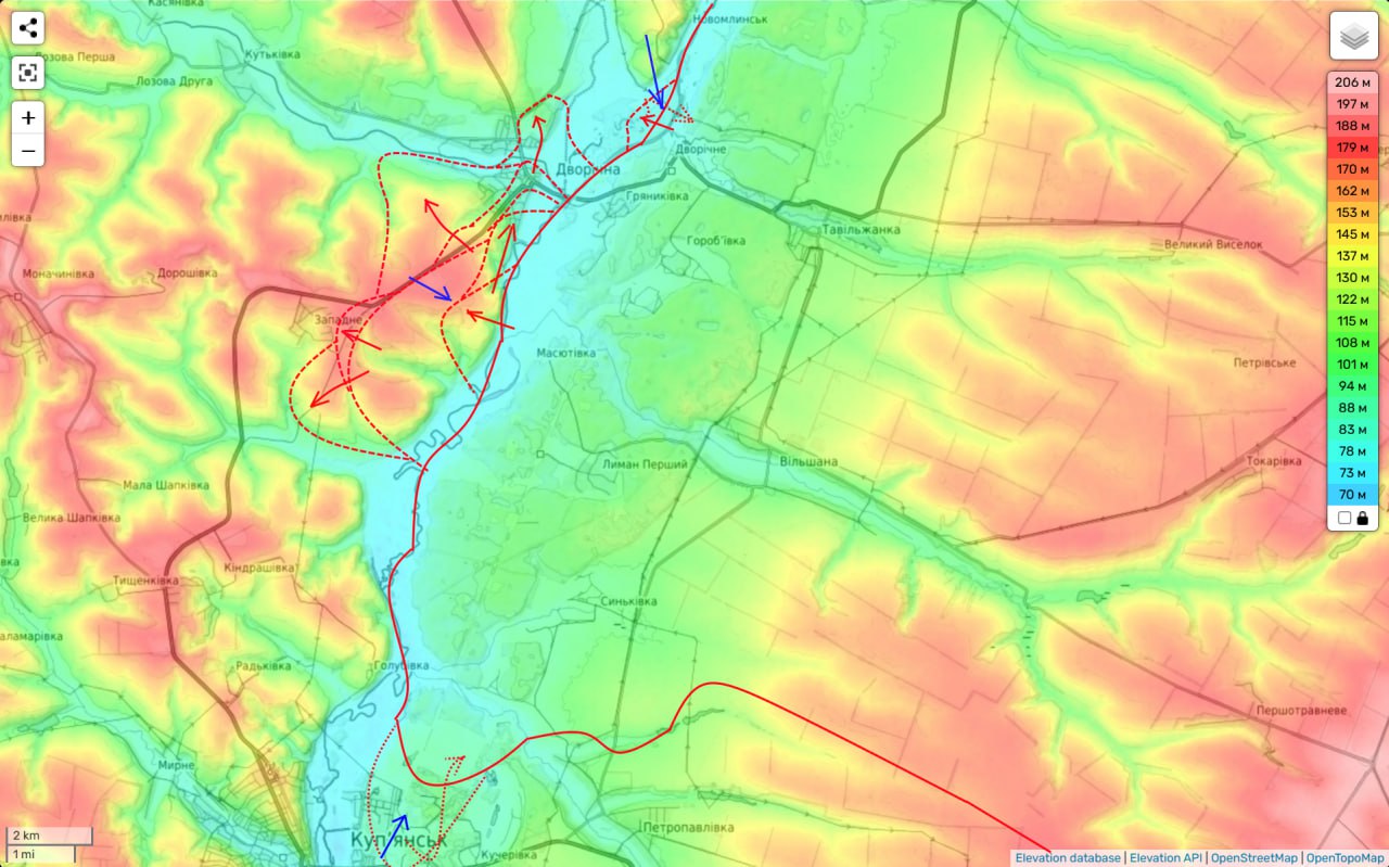 Бои за плацдарм западнее реки Оскол в районе н.п. Двуречная становятся все более и более масштабными.