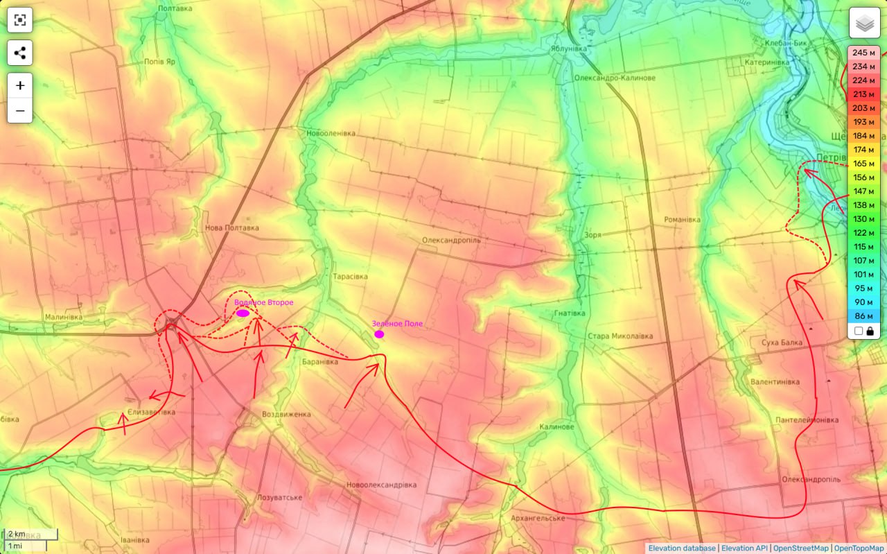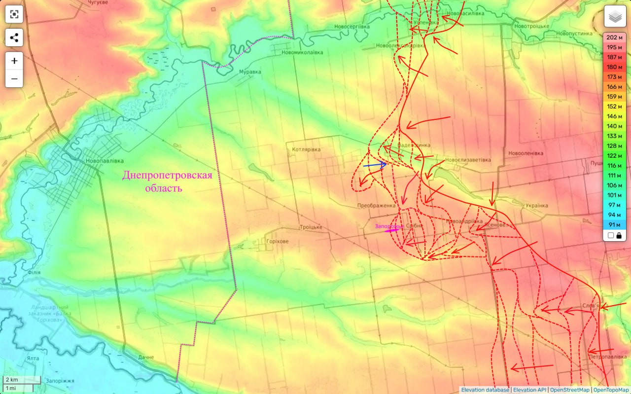 Наше командование очевидно вбивает клин в оборону противника, двигаясь к границе Днепропетровской области, где далее может наступать, как в тыл южной части Новопавловского фронта противника, так и на саму Новопавловку.