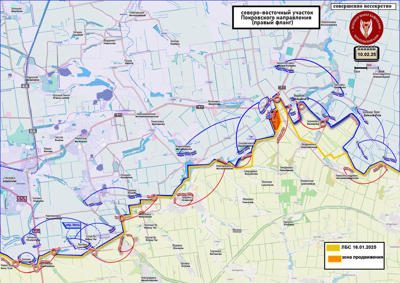 На правом фланге Покровского участка российским бойцам удалось закрепиться на территории фермы, расположенной недалеко от дорожной развязки на трассе Покровск- Константиновка. Благодаря этому мы получили выгодные позиции для атак в направлении этой трассы, а, главное, в направлении н.п. Малиновка.