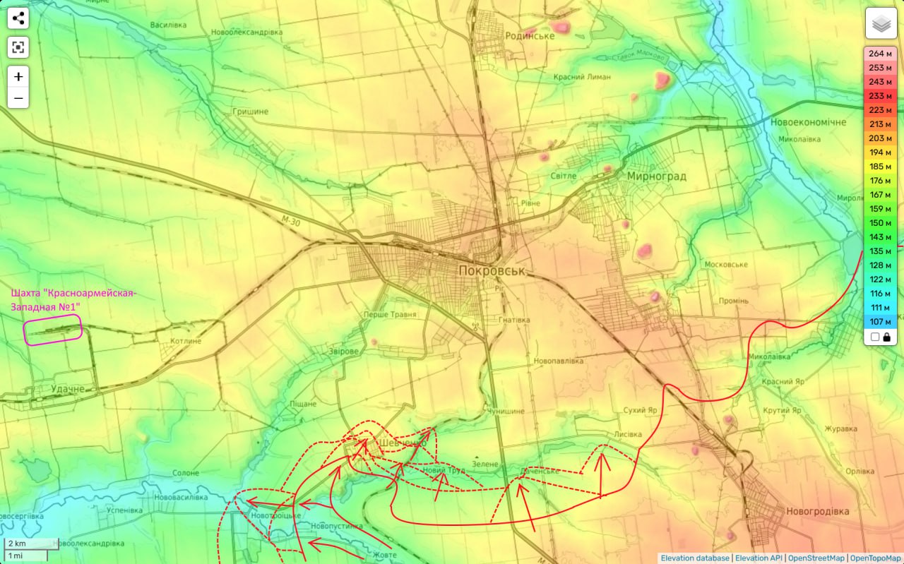 Таким образом, мы пытаемся обеспечить фланг наносящим главный удар (в обход Покровска с запада) нашим частям. И … быстро приближаемся к границам Днепропетровской области.