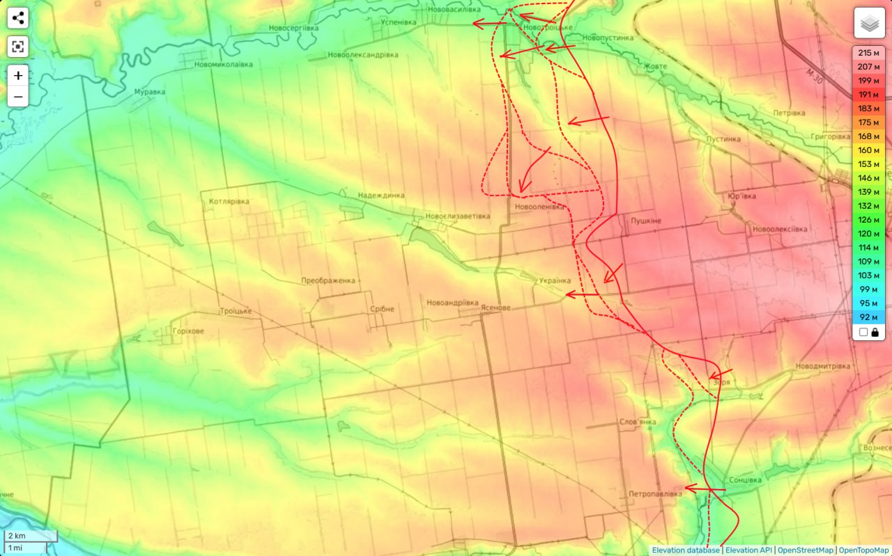 Что и дало нам возможность без боя занять очень сильные позиции и … фактически за несколько дней взять под контроль ключевое село южнее Покровска (Шевченко).