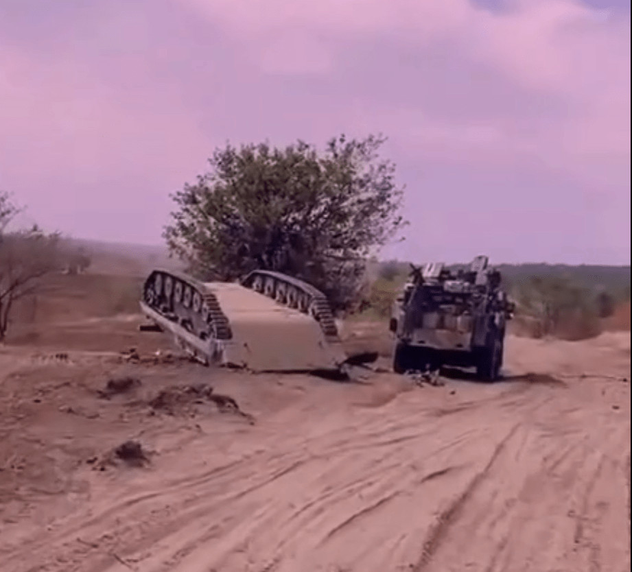 Перевёрнутая БМП укровермахта и стоящий рядом бронеавтомобиль «Husky TSV». Ну, Мыкола, акробат!