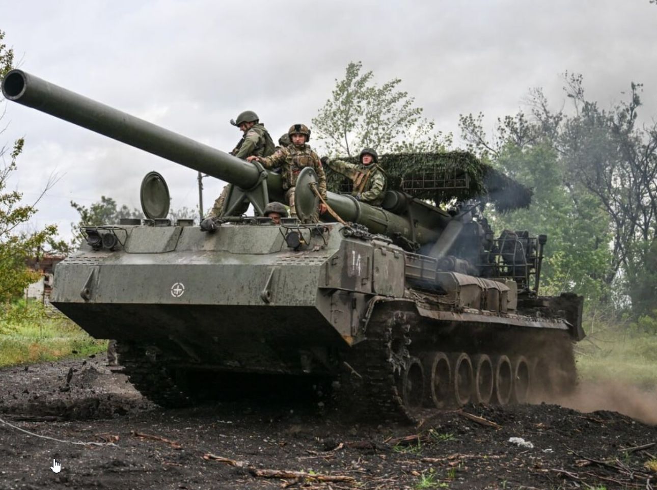 Боевая работа 152-мм колесной САУ 2С44 «Гиацинт-К» с дополнительной антидроновой защитой.