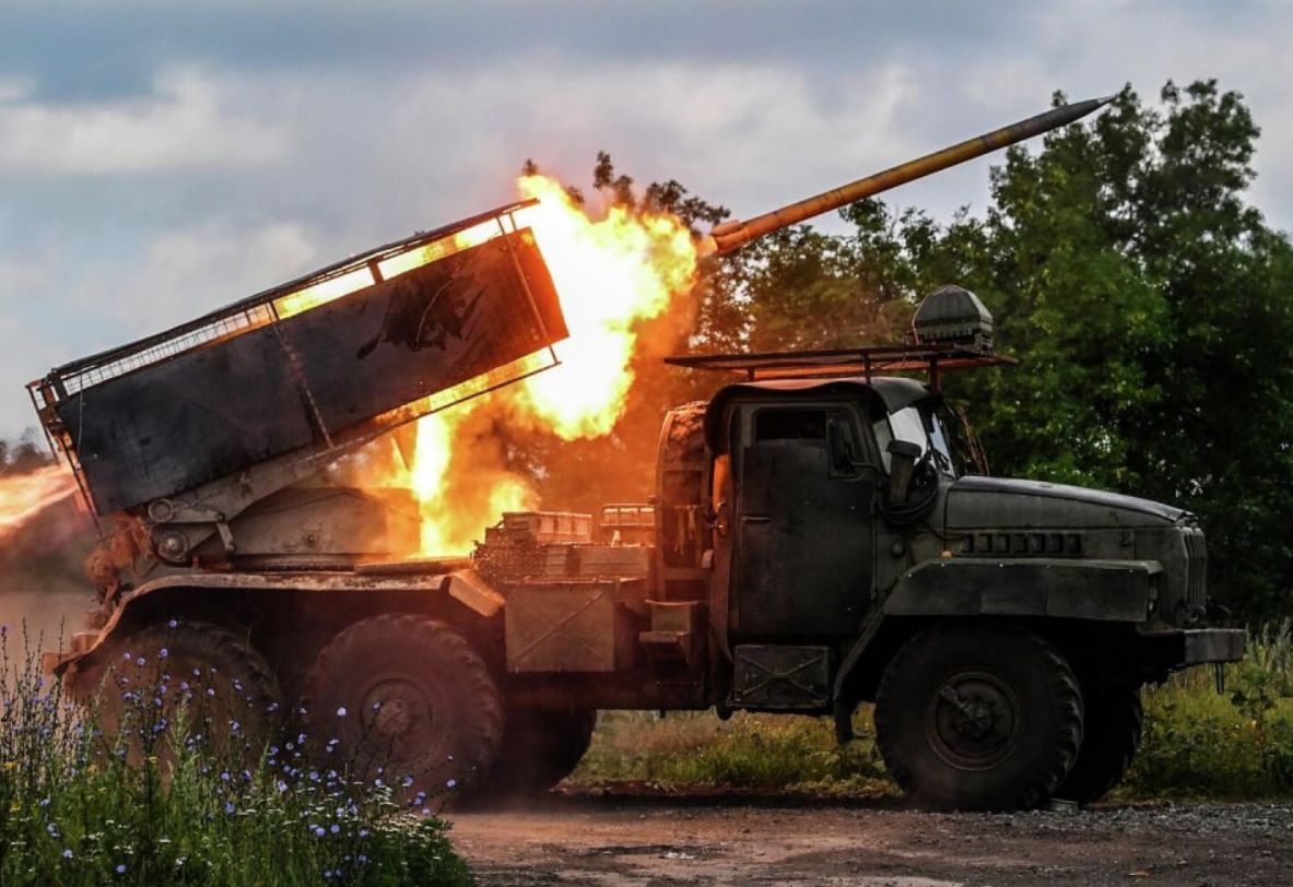 Обработка позиций ВСУ зажигательными реактивными снарядами 9М22С из РСЗО «Град» на одном из направлении СВО