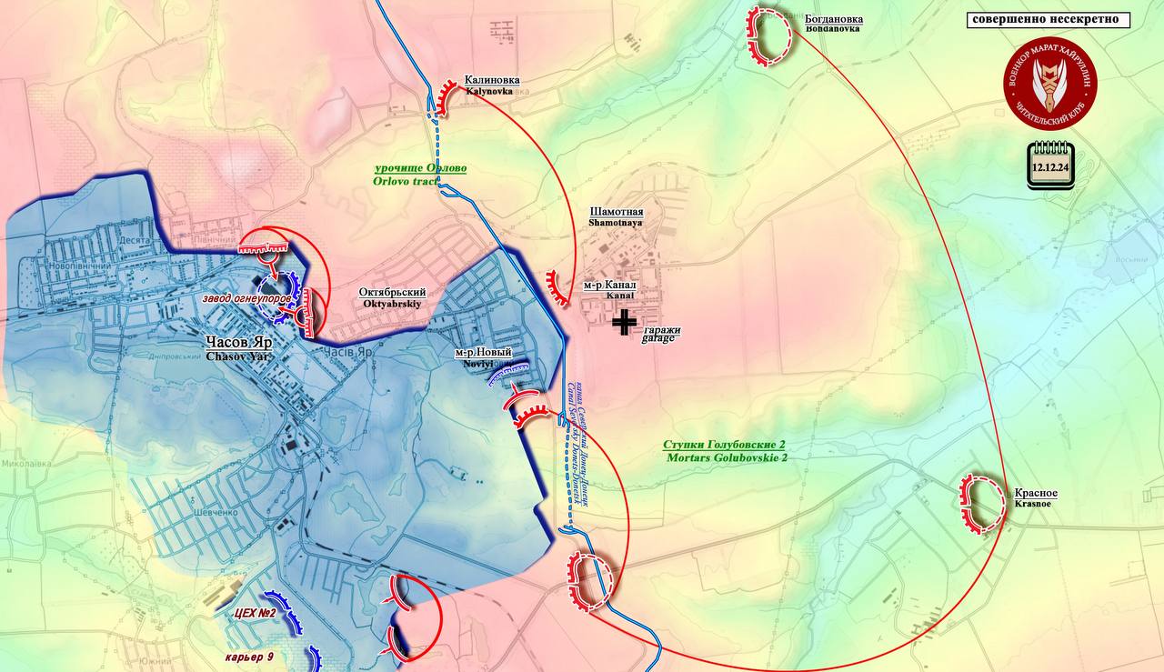 13.12.2024 Битва за Часов Яр: противник зажат, штурм города идет с трех направлений. Завод огнеупоров, это последнее укрепление ВСУ, за него идет ожесточенный бой. Карта боевых действий. (15 видео)