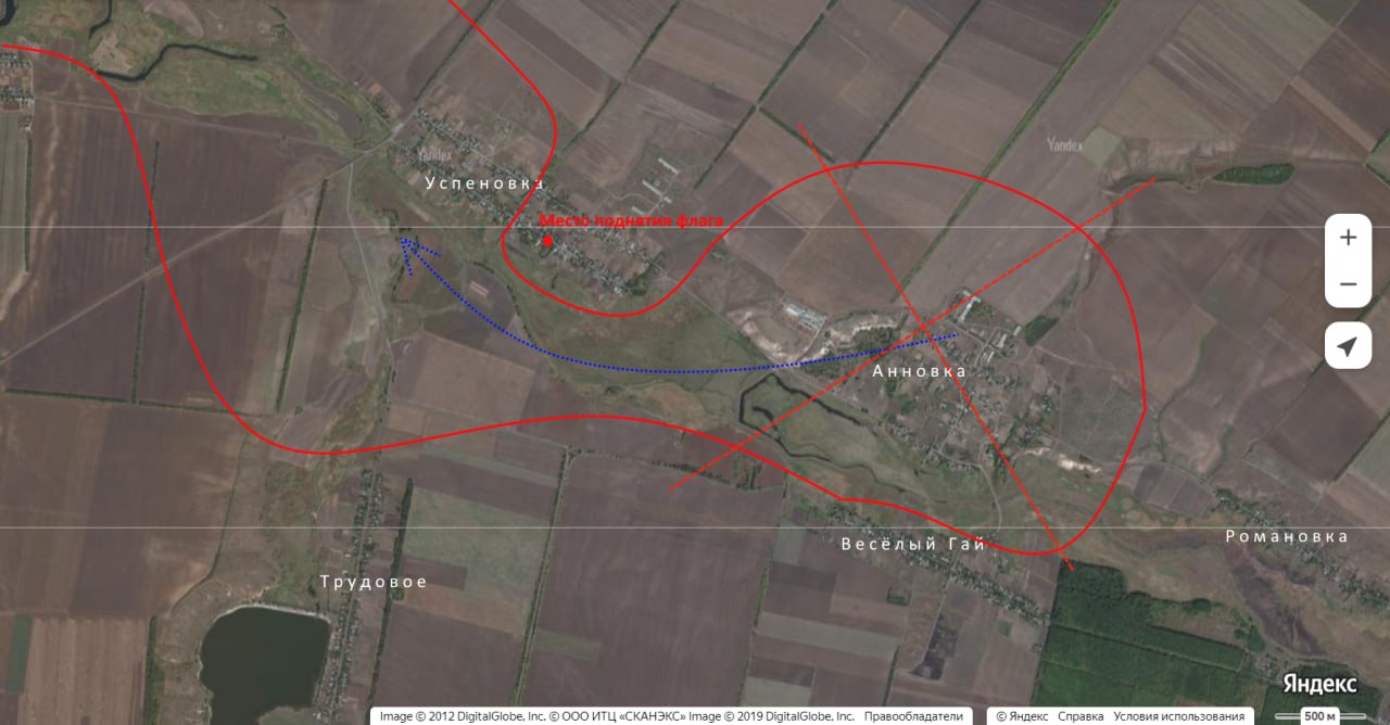К югу от Курахово завершилась операция по освобождению сразу нескольких населенных пунктов вдоль реки Сухие Ялы — подтверждением этому выступили кадры с военнослужащими 39-й гвардейской бригады 68-го АК ВС России с флагами в Веселом Гае и 255-й гвардейский мотострелковый полк 20-й гвардейской дивизии 8-й гв. Армии в центре Успеновки. Примечательно, что еще вчера украинские ресурсы противоречиво описывали ситуацию на участке: пока одни сетовали на удручающее положение ВСУ, другие обходились формулировками в духе «все под контролем». Теперь последние на основе новых кадров могут наконец-таки развеять сомнения. Тем более, что де-факто утрату контроля над населенными пунктами признал и донецкий гауляйтер Филашкин, которые впервые за долгое время не отчитался об ударах ВС РФ по Успеновке, Анновке и Веселому Гаю.