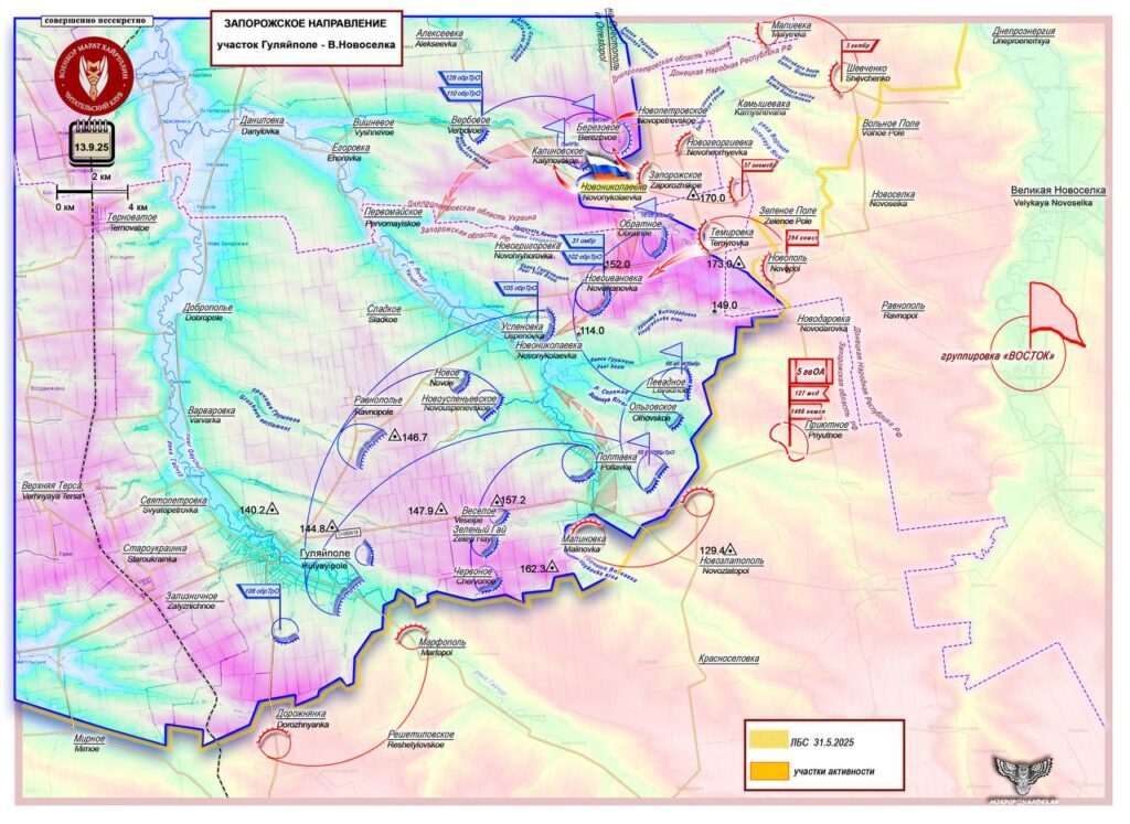 ВС РФ продолжают уничтожение южного района обороны ВСУ в Днепропетровской области Украины (Березовое — Калиновка — Новониколаевка).