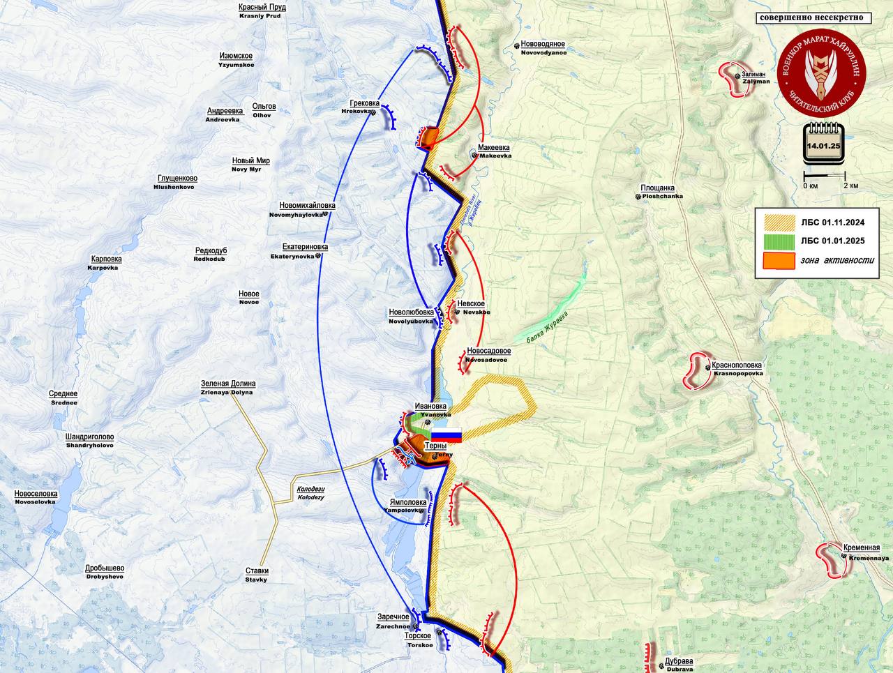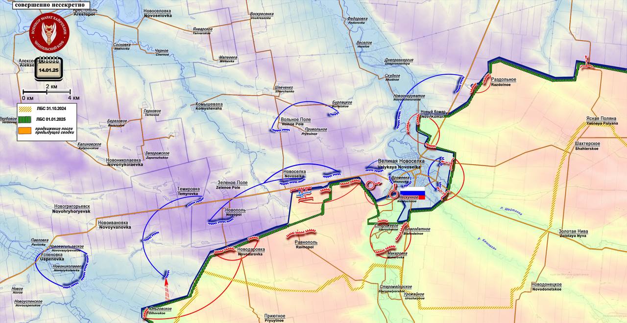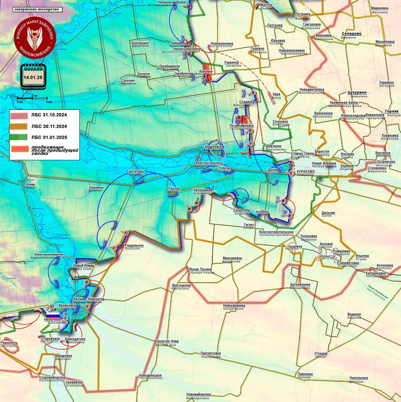 15.01.2025 Украина — Битва за Великую Новоселку: Российские войска создают условия для окружения гарнизона противника. После освобождения н. п. Времьевка клещи замкнутся. (15 видео)