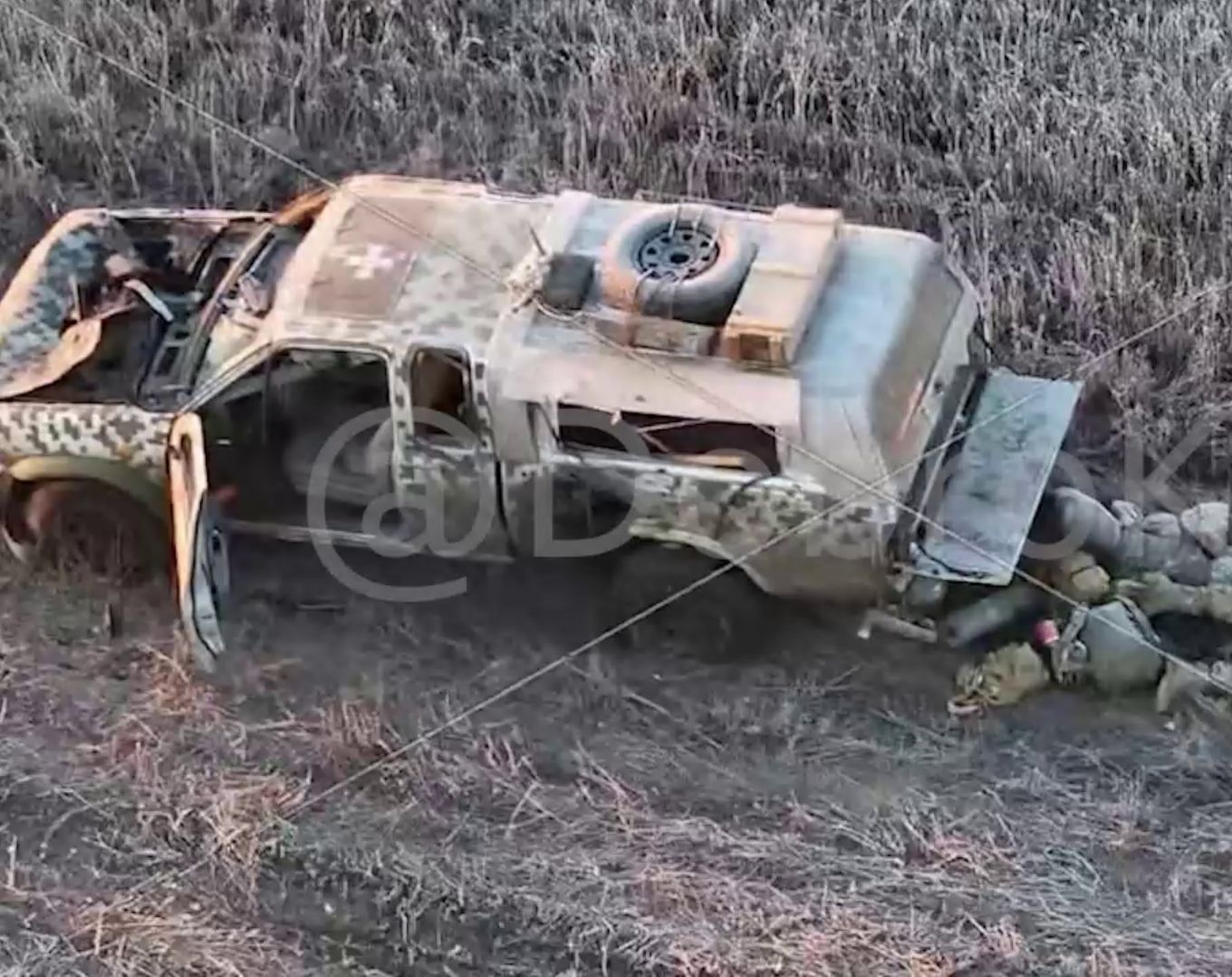 Украинский оккупант выпрыгивает из пикапа на ходу. Боевик, находившийся в кузове, успел в последний момент аки подстреленная свинья выпрыгнуть из «колесницы смерти», получив значительные травмы. Водитель и боевики, находившиеся внутри автомобиля были успешно ликвидированы.