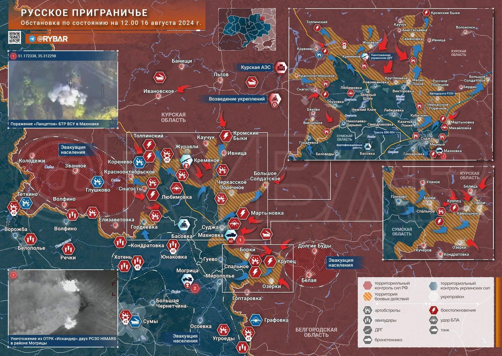 16.08.2024 Битва на Курском направлении: Идут бои по возращению территорий. Леса и лесополосы кишат вражескими ДРГ. ВСУ атаковали Крымский мост атакован американскими ракетами ATACMS. (13 видео)