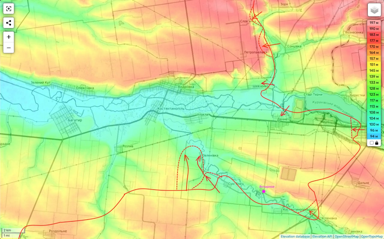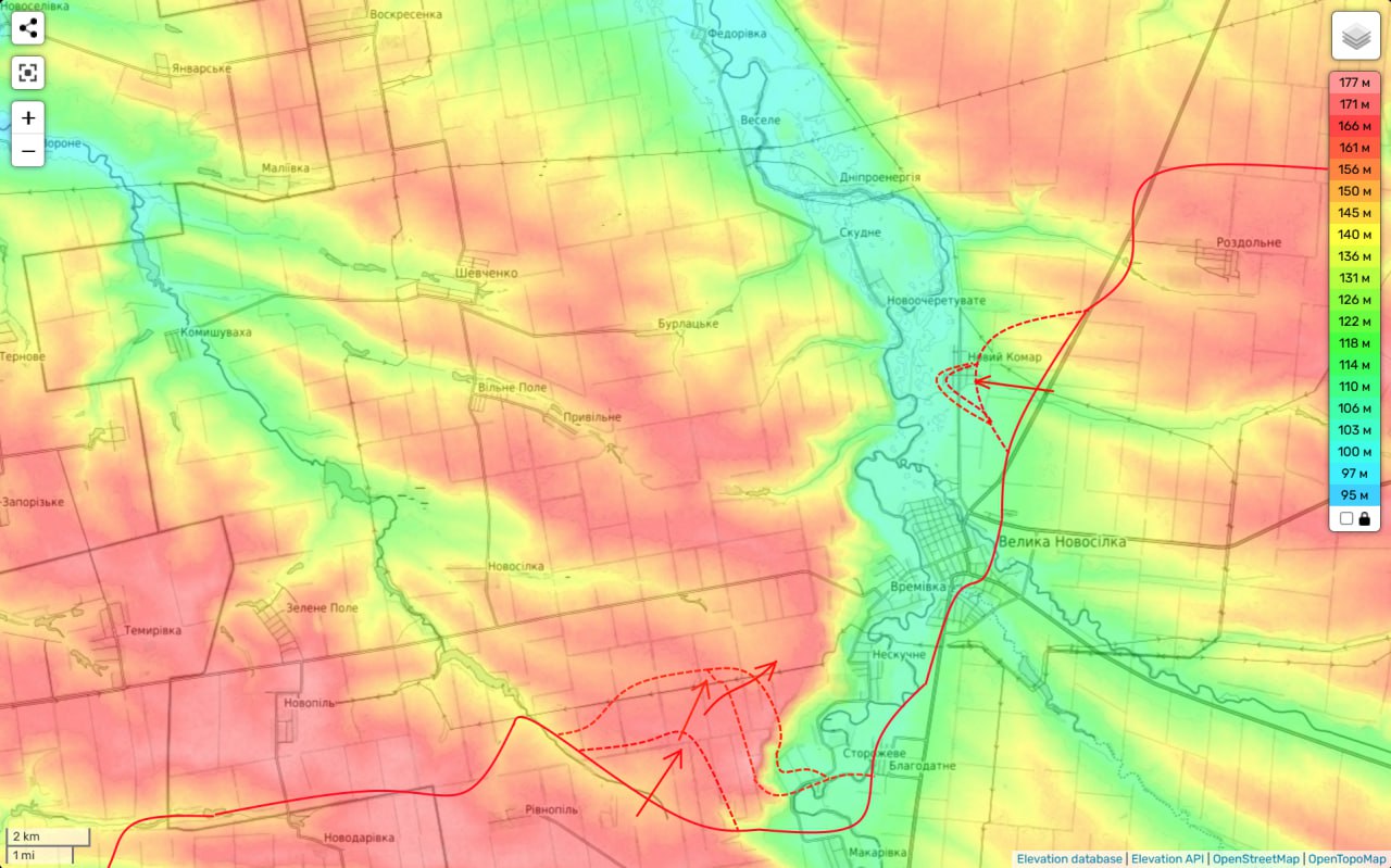 Еще есть возможность как-то проехать (тоже под огнем дронов) по проселочным дорогам на Времеевку с севера, но еще один рывок западнее реки Мокрые Ялы и эта возможность также будет практически обнулена.