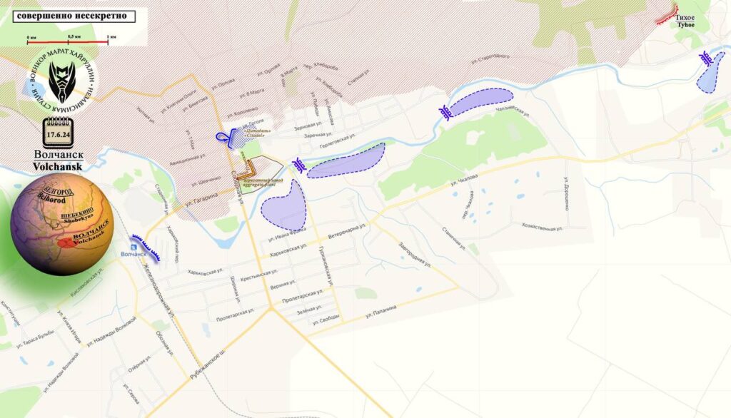 На Волчанском участке противник также пытается контратаковать. Сейчас они накапливают технику в районе н.п. Тихое с прицелом ее переброса на северный берег реки Волчья, чему противодействуют наши вооружённые силы. Пехоте противника там периодически удаëтся переправляться и они даже зашли в село. Но без техники их контратаки на восточную часть Волчанска наши войска успешно отбивают, нанося существенный урон их личному составу.