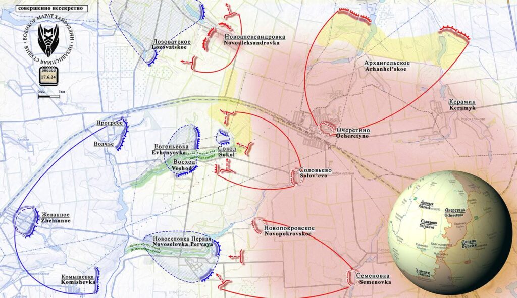 На Покровском направлении ВС РФ продолжают расширять свой контроль севернее Очеретино, выходя за линию ставков на всë более широком участке.
