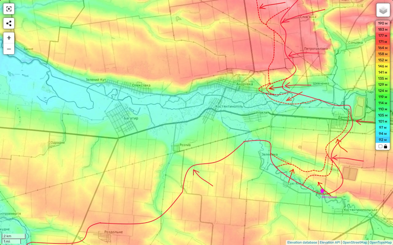 Таким образом фронт противника продолжает уверенно трещать и поддаваться назад, приближая нас сразу к двум целям — глубокому охвату Покровской агломерации с запада и … выходу к Днепропетровской области. До которой из занятой нами части Удачного осталось всего 5 км. А с западной окраины его будет и вовсе чуть больше 2 км.
