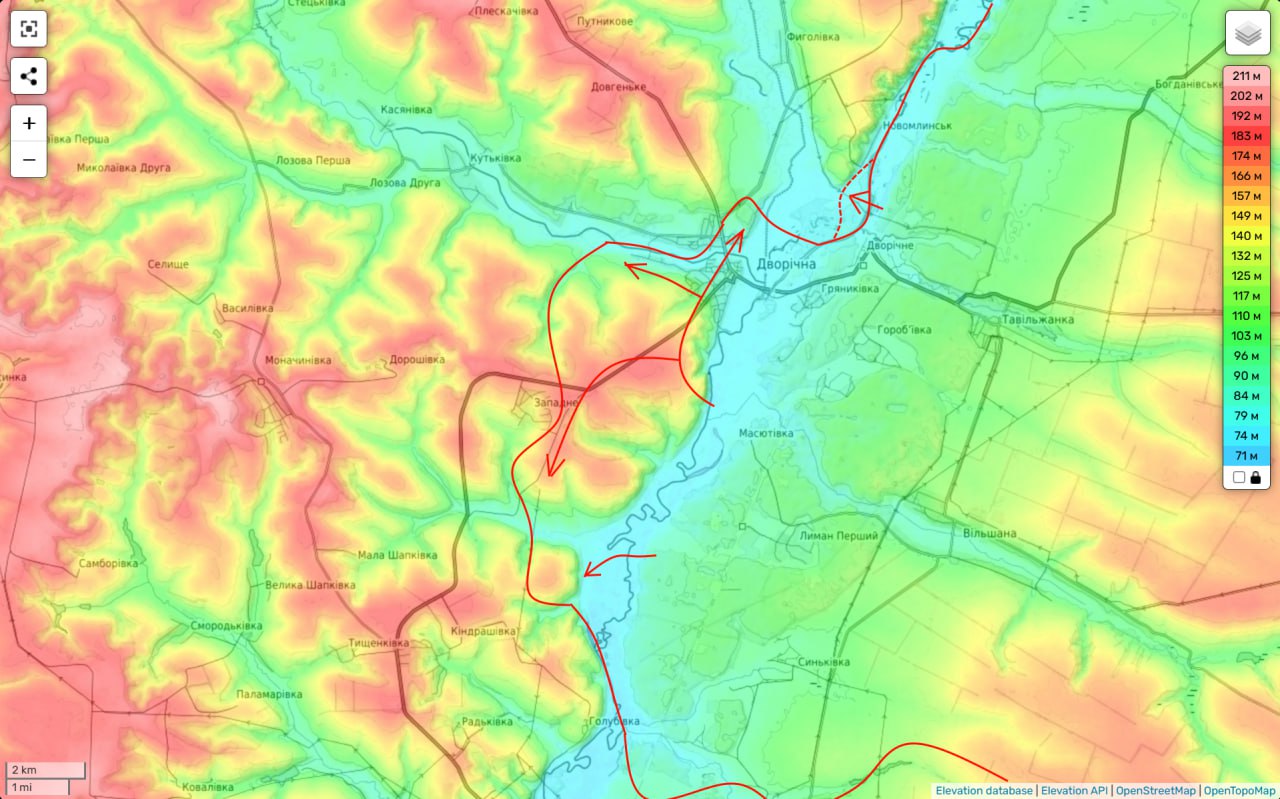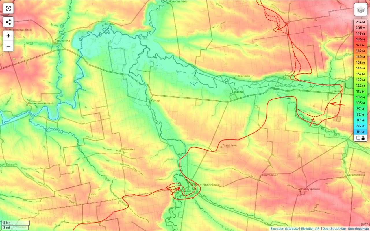 Которые также, в свою очередь, могут скоро (если наши части после освобождения Большой Новосёлки нанесут удар на север, а в междуречье продолжится успешное наступление в сторону границы с Днепропетровской областью) оказаться охваченными с севера и юга.