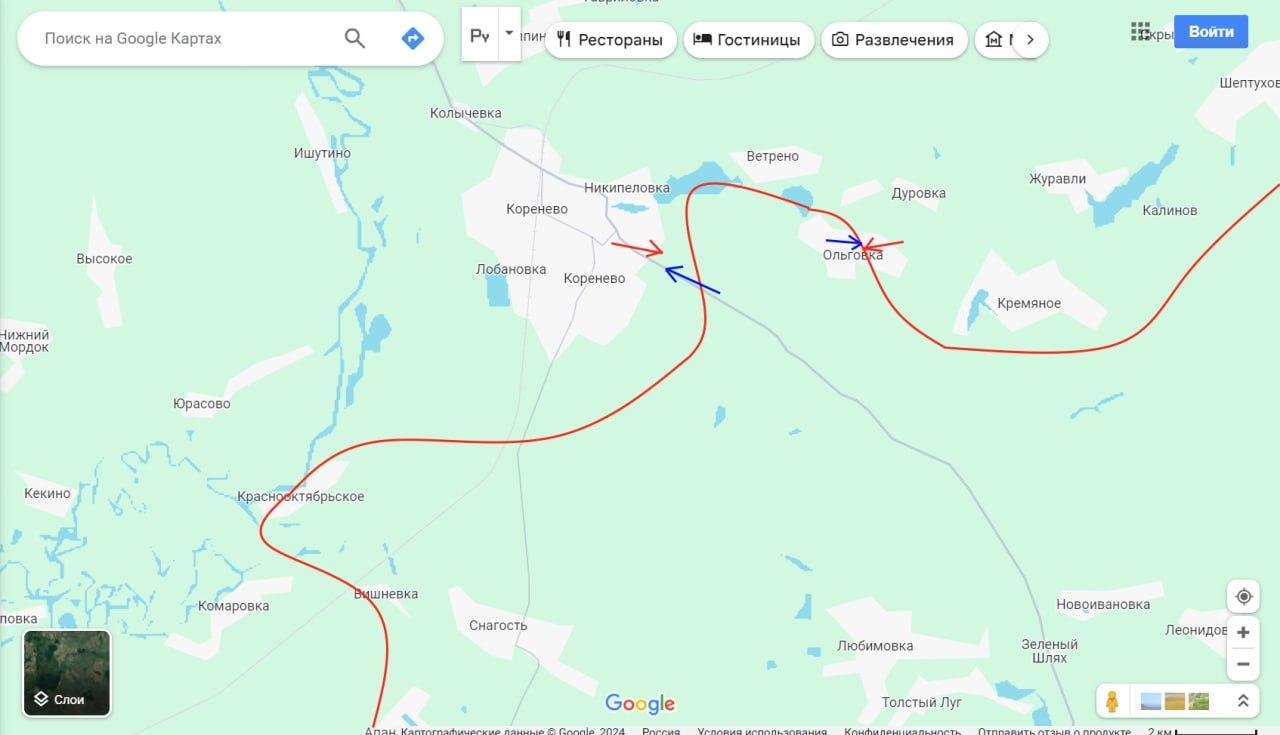Выбивание противника из Ольговки, через более плотный наш контроль дороги Суджа-Коренево заметно упростит ситуацию не только для защитников районного центра, но и для наших солдат на Льговском направлении, где оборону держат части 18-ой мотострелковой дивизии.