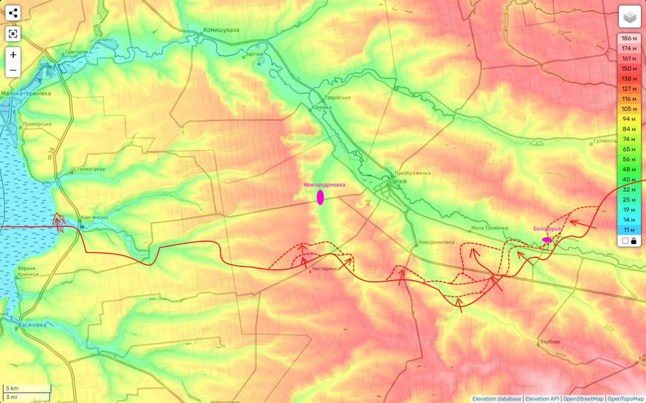 Дальше штурмовать через реку холмы пока не будет достигнут оперативный успех со стороны Ровнополя и трасса на Гуляйполе не будет физически перерезана задача «так себе».