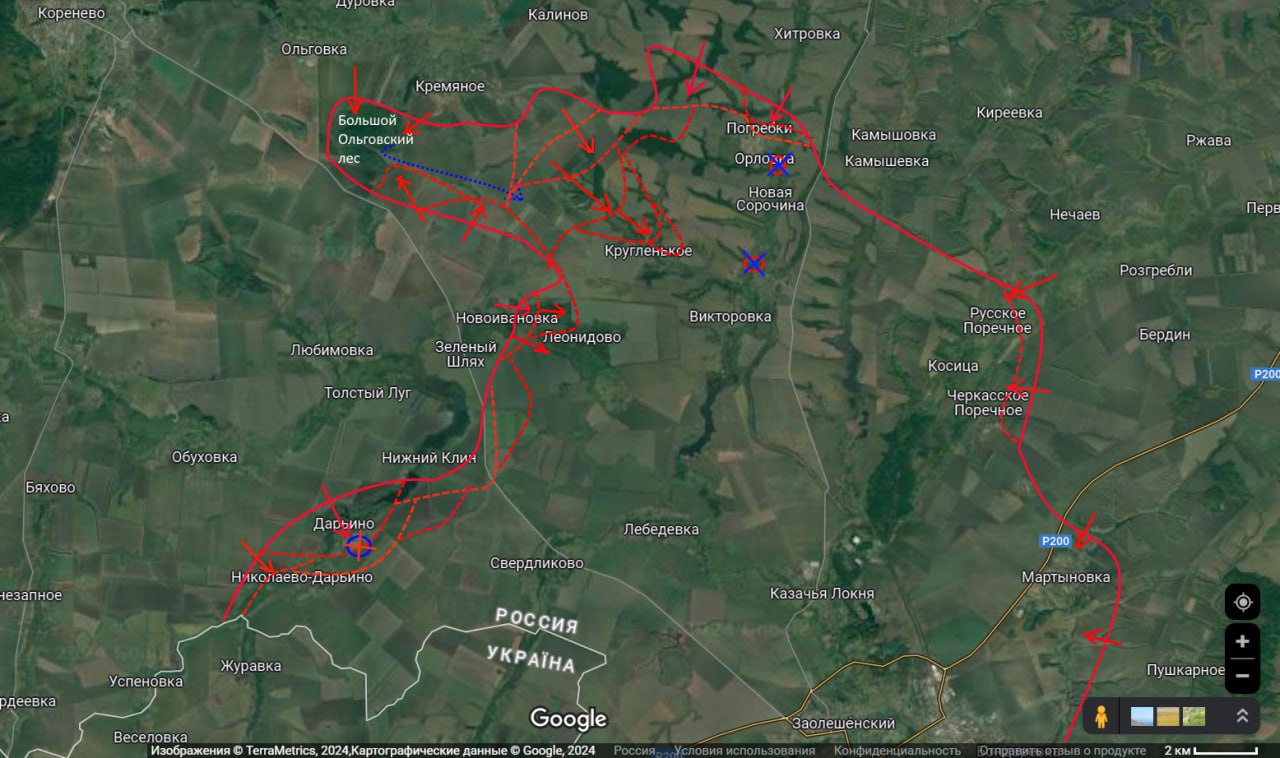 Таким образом если сложить воедино три эти новости, то мы видим очевидное желание нашего командования широким фронтом выйти в район Викторовки и ударить во фланг группировке противника засевшей в Погребках-Малой Локне.