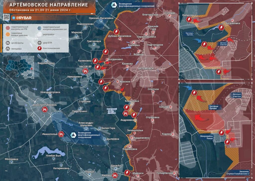 Артёмовское направление: продвижение ВС РФ на восточной окраине Часова Яра. У Часова Яра российские войска продолжают с тяжелыми боями продвигаться на восточных окраинах города и его окрестностях.