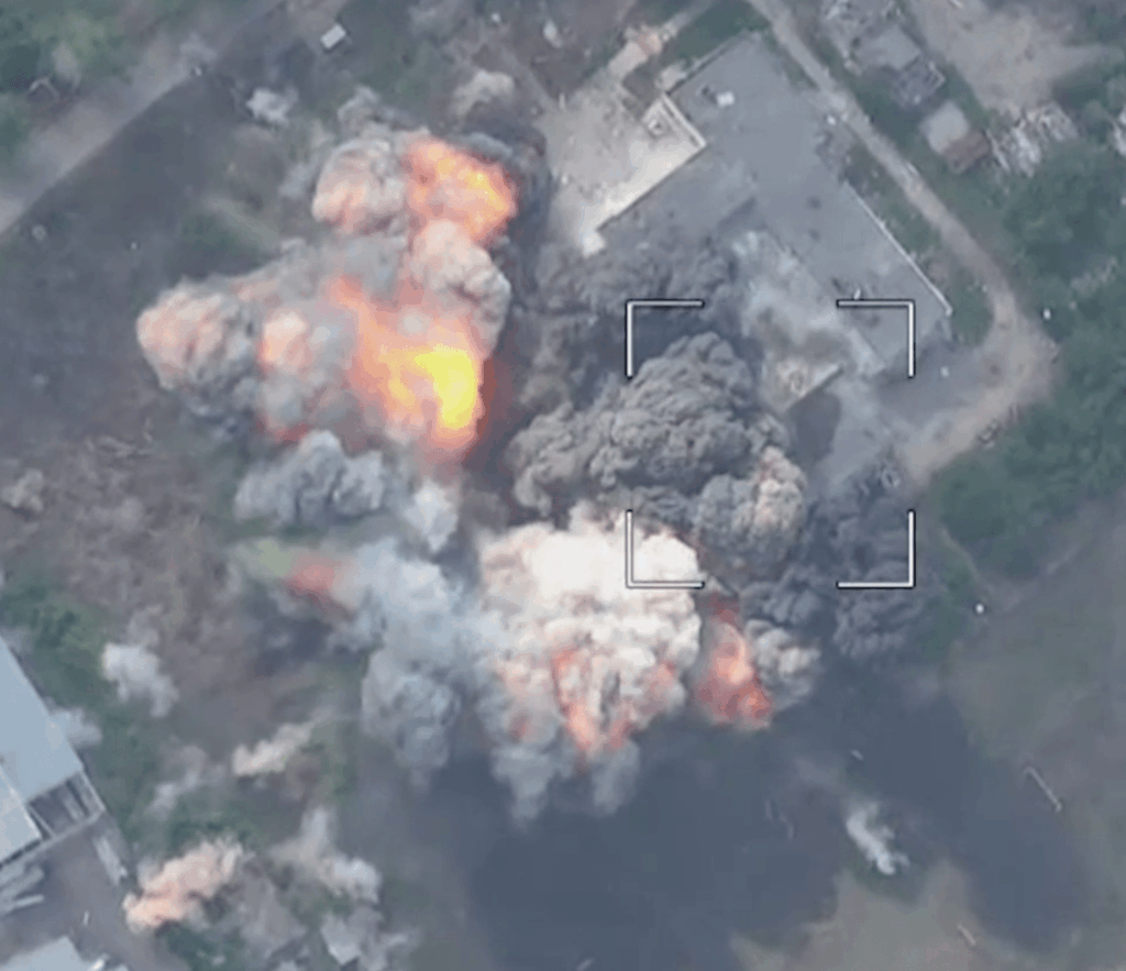 Удар ракетой Х-39 ЛМУР и последующий объективный контроль сразу с нескольких ракурсов ее прилета по используемому противником зданию в селе Пречистовка, подконтрольная ВСУ часть ДНР.