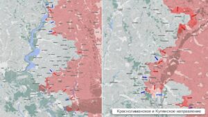 На Красноармейском направлении продолжаются городские бои. Подразделения ВСУ сообщают о затруднениях в применении БПЛА из-за неблагоприятных погодных условий. Российские военнослужащие используют сложившиеся метеоусловия для продвижения и зачистки городской застройки. Начальник Генерального штаба Герасимов заявил о установлении контроля над 70% территории Красноармейска. Продолжаются интенсивные боевые действия в Димитрове. В районах Родинского и Шахово также сохраняется напряжённая обстановка, однако подробная информация с этих участков отсутствует.