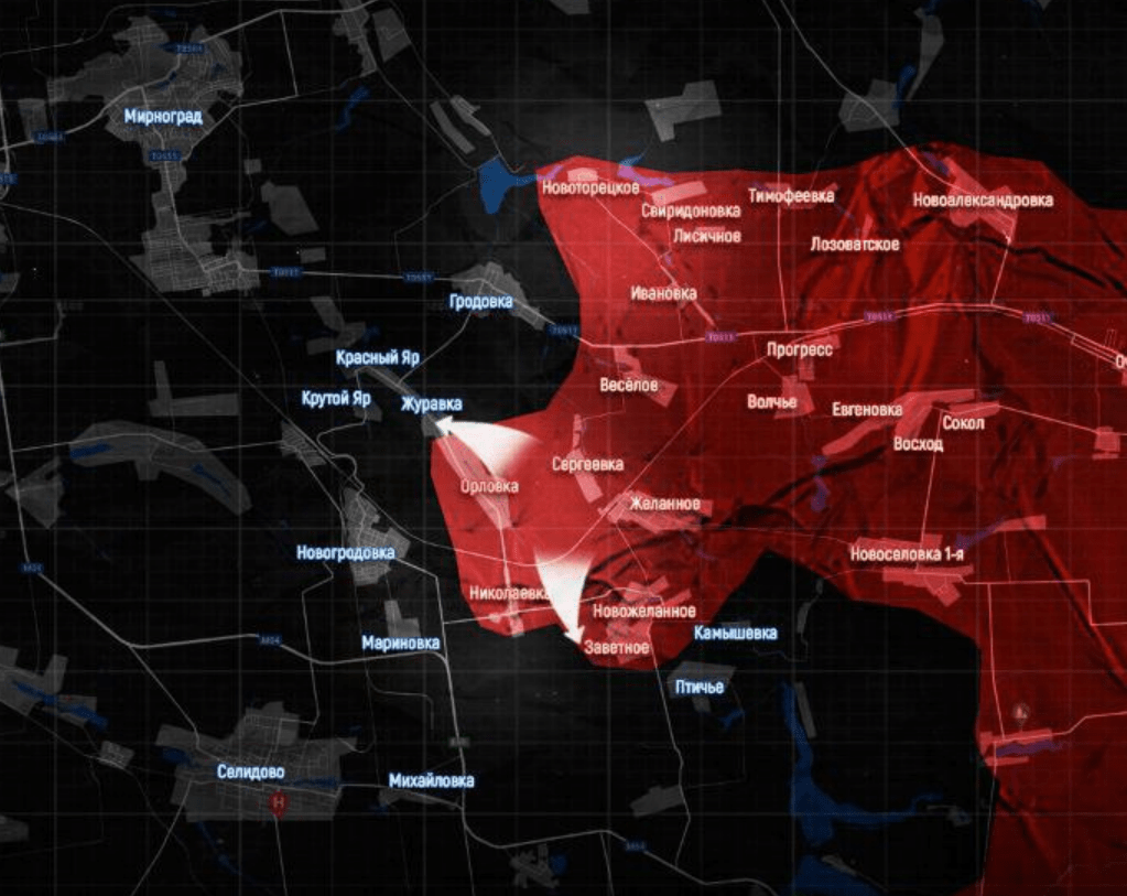 На Покровском направлении ВС РФ после освобождения Птичьего подошли к окраинам Калиново. После взятия этого села наши парни могут выйти в тыл позиций противника в Карловке. Западнее российская армия продвинулась в Гродовке и ведёт городские бои на восточных окраинах Новогродовки. После освобождения этого города российские силы, скорее всего, могут пойти широким фронтом на Селидово.
