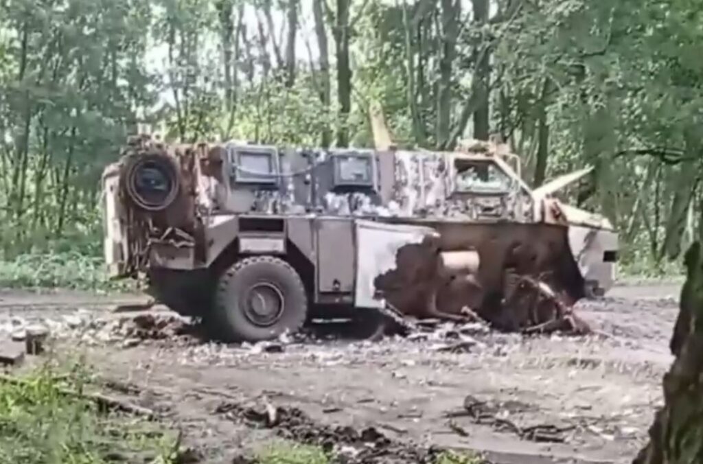 Уничтоженный в Сумской области русскими FPV-дронами французский БТР VAB украинских боевиков.