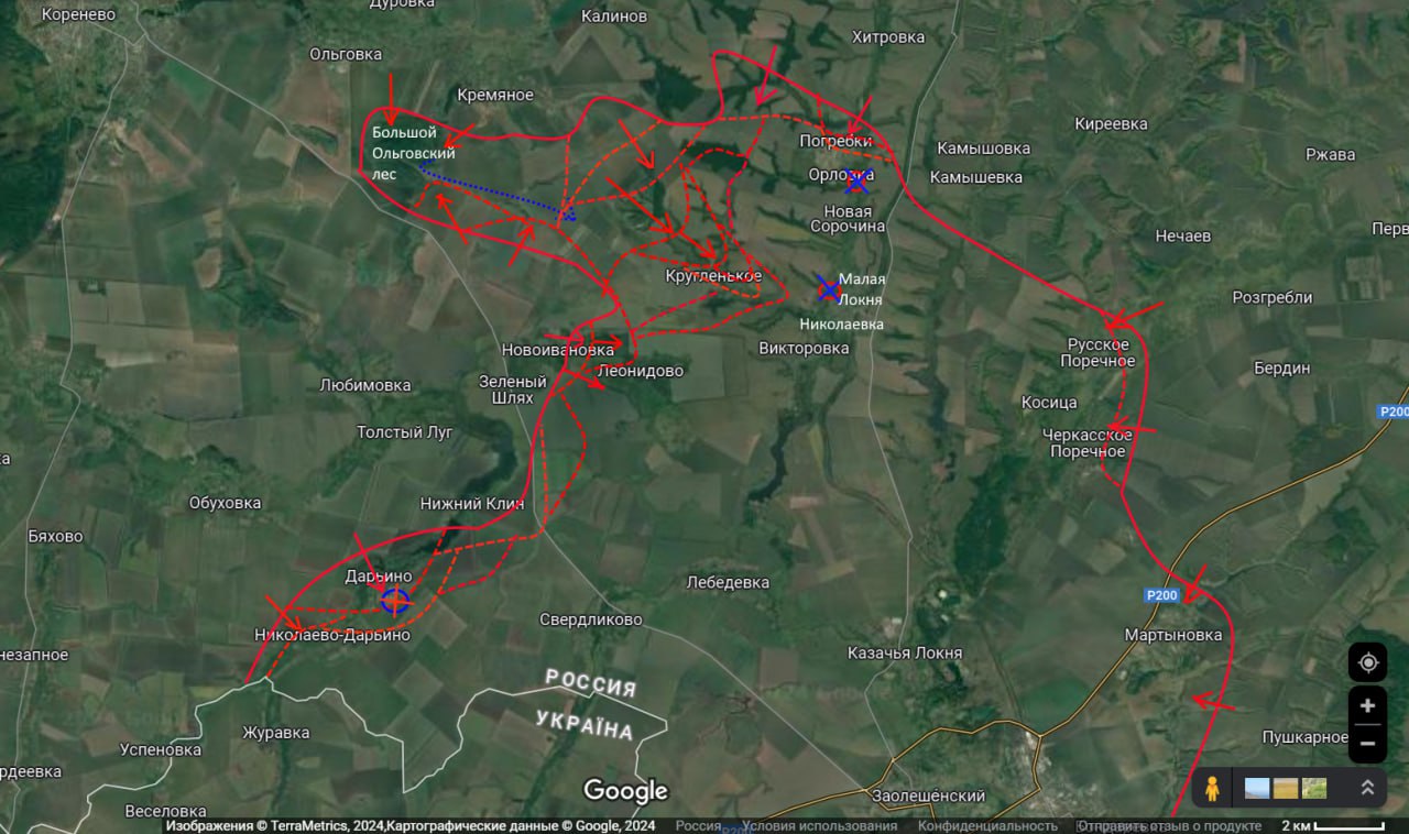 Планомерное наше наступление на Кругленькое закончилось взятием села под контроль. Более того, мы уже атакуем по балке по направлению на Николаевку, которая далее переход в Малую Локню.