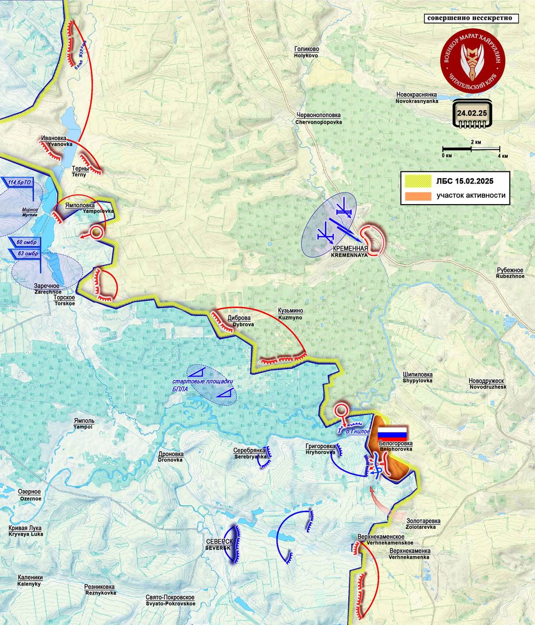 Также усилилась наша активность в районе Золотарёвского заказника, позиции в лесном массиве которого и севернее него позволяют контролировать подходы к Белогоровке. Закрепление здесь даст возможность усилить давление на позиции противника и в районе Верхнекаменского.
