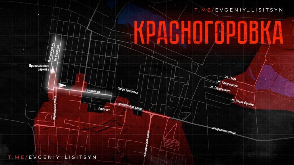 В восточной части Красногоровки ВС РФ освободили часть многоэтажных зданий в микрорайоне «Солнечный». На западе продолжаются интенсивные боевые действия вдоль улиц Покровская, Суворова и Сумская.