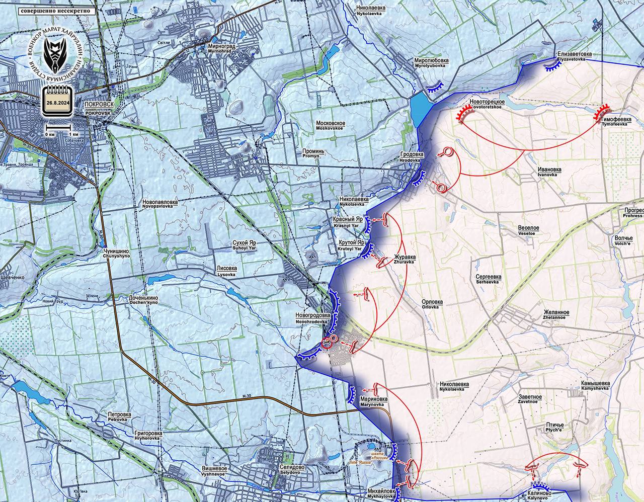 Уверенно продвигаются наши бойцы в н.п. Новогродовка, где вышли в район здания Горсовета. Отдельные наши отряды работают в районе железнодорожного моста в западной части города.
