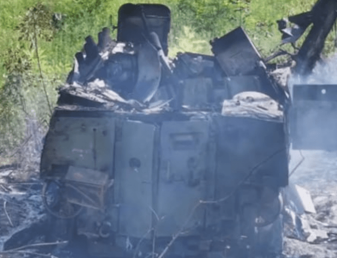 Украинский военный заснял удар БПЛА-камикадзе «Ланцет» по Т-64БВ ВСУ в Черкасском Поречном Курской области. Позже этот танк догорел, а «Ланцеты» сожгли бронеавтомобиль «Казак-2» из этой же колонны.