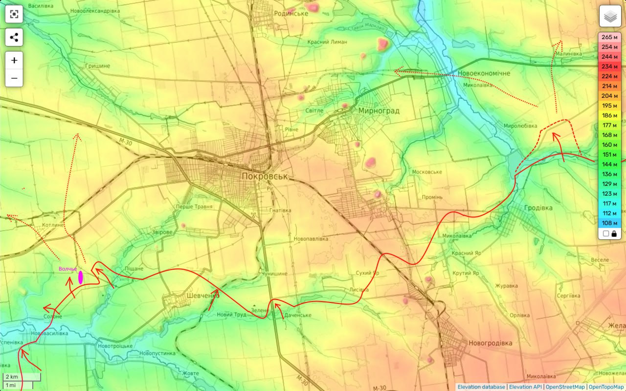 Итак, все это мы наблюдаем уже не первую неделю. Вчера же, судя по истерикам противникам и данным с мест, случилось давно ожидавшееся еще одно важное событие. Начало формирование восточной клешни охвата Покровской агломерации.