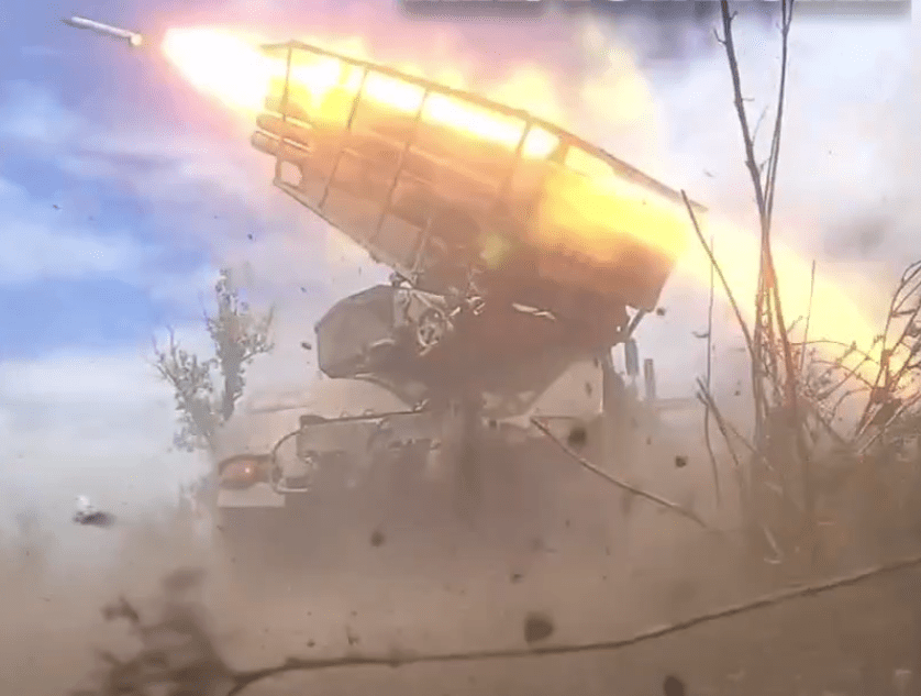 Уральские реактивщики отправляют врагам 122-мм подарки.