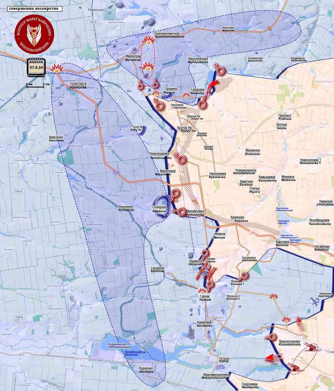 Круговая оборона будет осуществима лишь в том случае, если позиции были предварительно укреплены аналогично укреплениям в Авдеевке. Однако предварительные данные указывают на то, что украинская армия не успела завершить бетонные работы. Теоретически, каскад бывших водохранилищ мог бы помочь в укреплении обороны, но попытки закрепиться в этом районе в последние дни были подавлены артиллерийским огнём РФ. Основной проблемой остаётся то, что вся цепочка населённых пунктов находится на возвышенности, однако при текущей интенсивности артиллерийского огня это преимущество может быть нивелировано. Ситуация требует оперативного анализа и принятия решений для сохранения позиций и минимизации потерь.