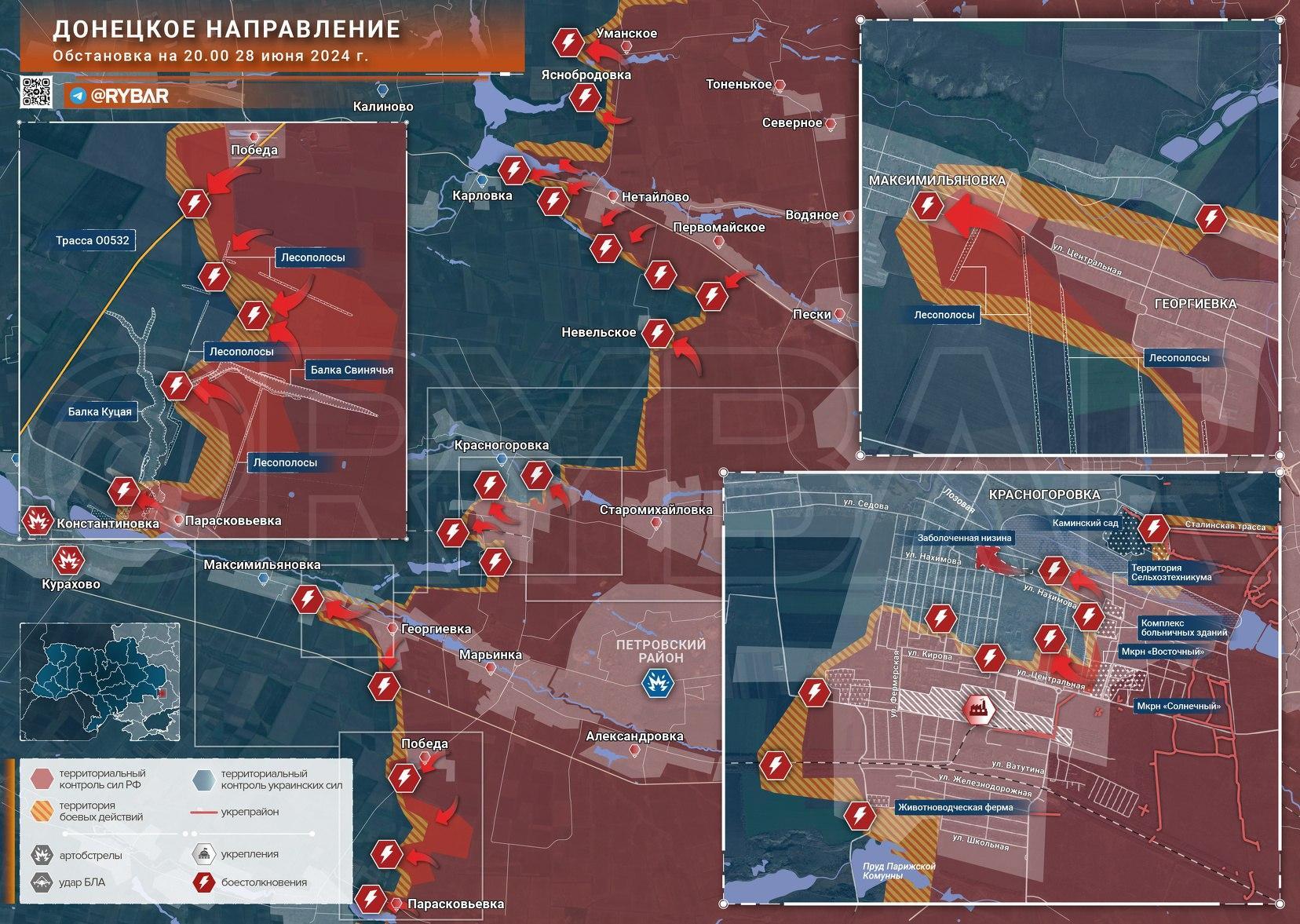 Донецкое направление: продвижение ВС РФ в Красногоровке и Георгиевке, освобождение Парасковьевки. После некоторого затишья на Донецком направлении российским войскам удалось провести серию успешных атак. Продвижения зафиксированы со стороны Георгиевки и Победы, где долгое время не было какой-либо информации о линии фронта, а также в Парасковьевке и Красногоровке.