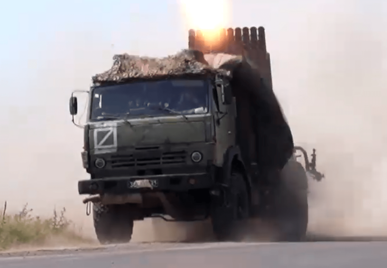 Запорожская область, расчёты РСЗО «Град» группы войск «Днепр» работают по скоплениям живой силы ВСУ.